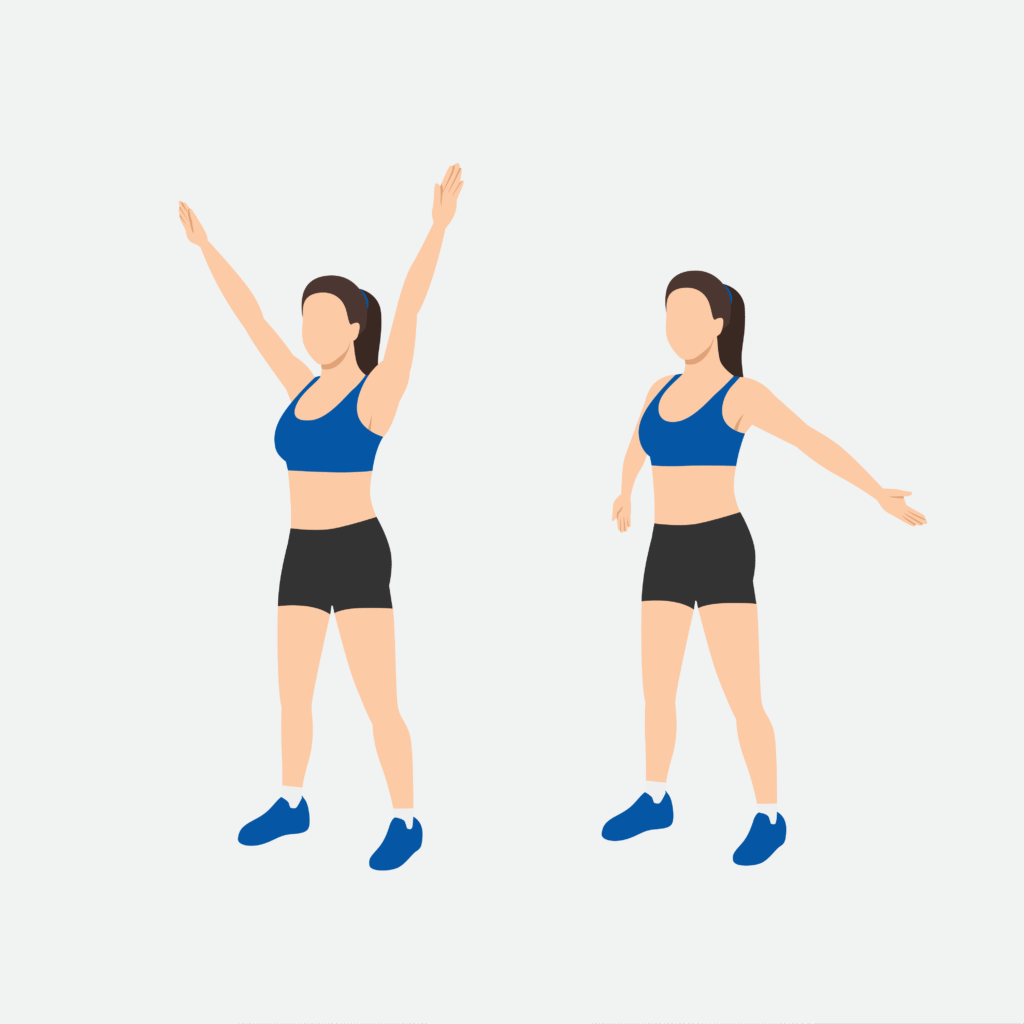 - Standing Arm Presses (10 reps): Arms at shoulder height, push forward and return.