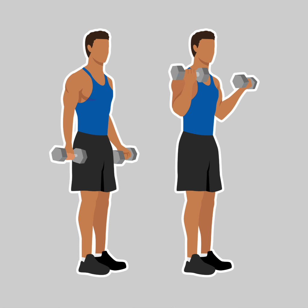 Dumbbell Bicep Curls (8–10 reps)