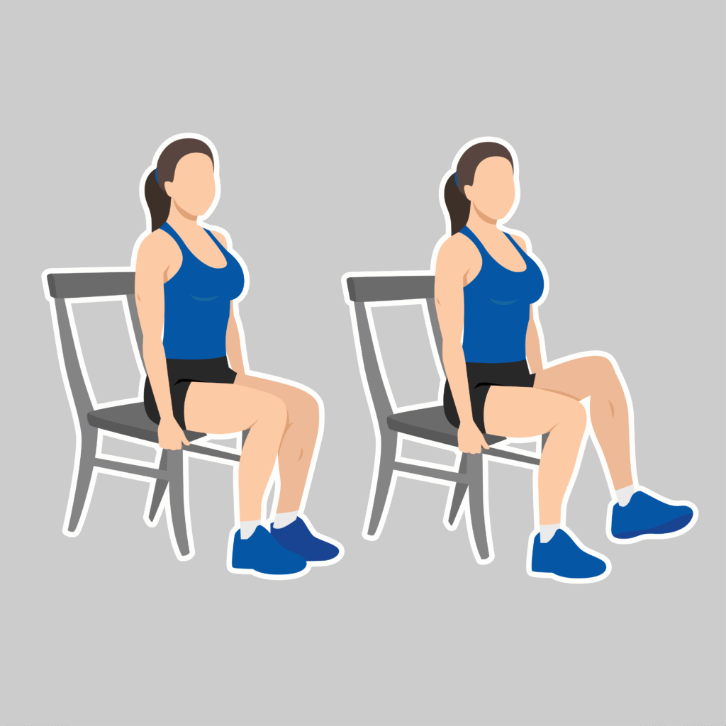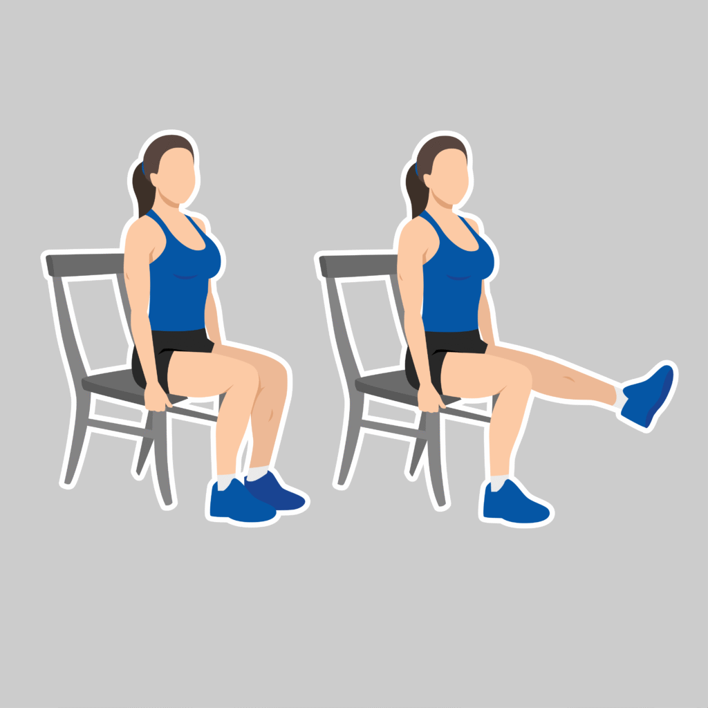 - Seated Leg Lifts (10 per side): Lift one straight leg, hold briefly, then lower.